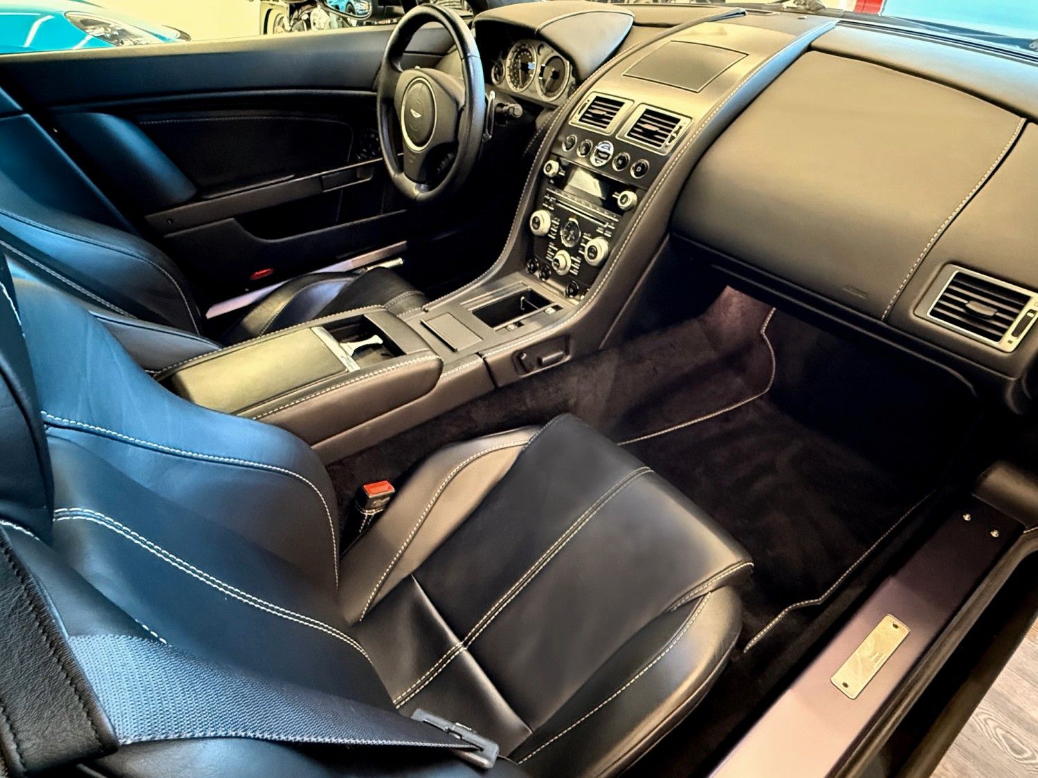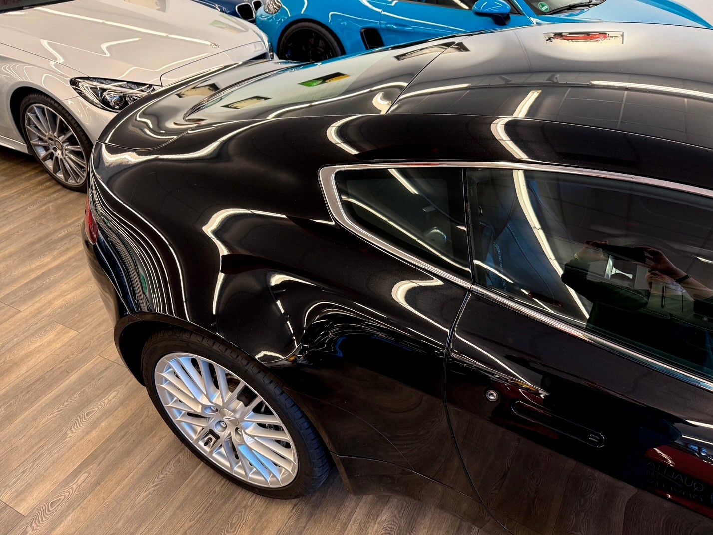 Die Ausstattung umfasst eine 2-Zonen-Klimaautomatik, Navigationssystem, Soundsystem und CD-Wechsler. Für Sicherheit sorgen Front- und Seitenairbags, ESP, ABS, Traktionskontrolle sowie Einparksensoren vorne und hinten. Das Sportpaket, Xenon-Scheinwerfer mit adaptivem Kurvenlicht und Scheinwerferreinigungsanlage runden das Angebot ab. Mit deutscher Länderversion und grüner Umweltplakette ist dieser Aston Martin ein Traumwagen für Sportwagen-Enthusiasten.