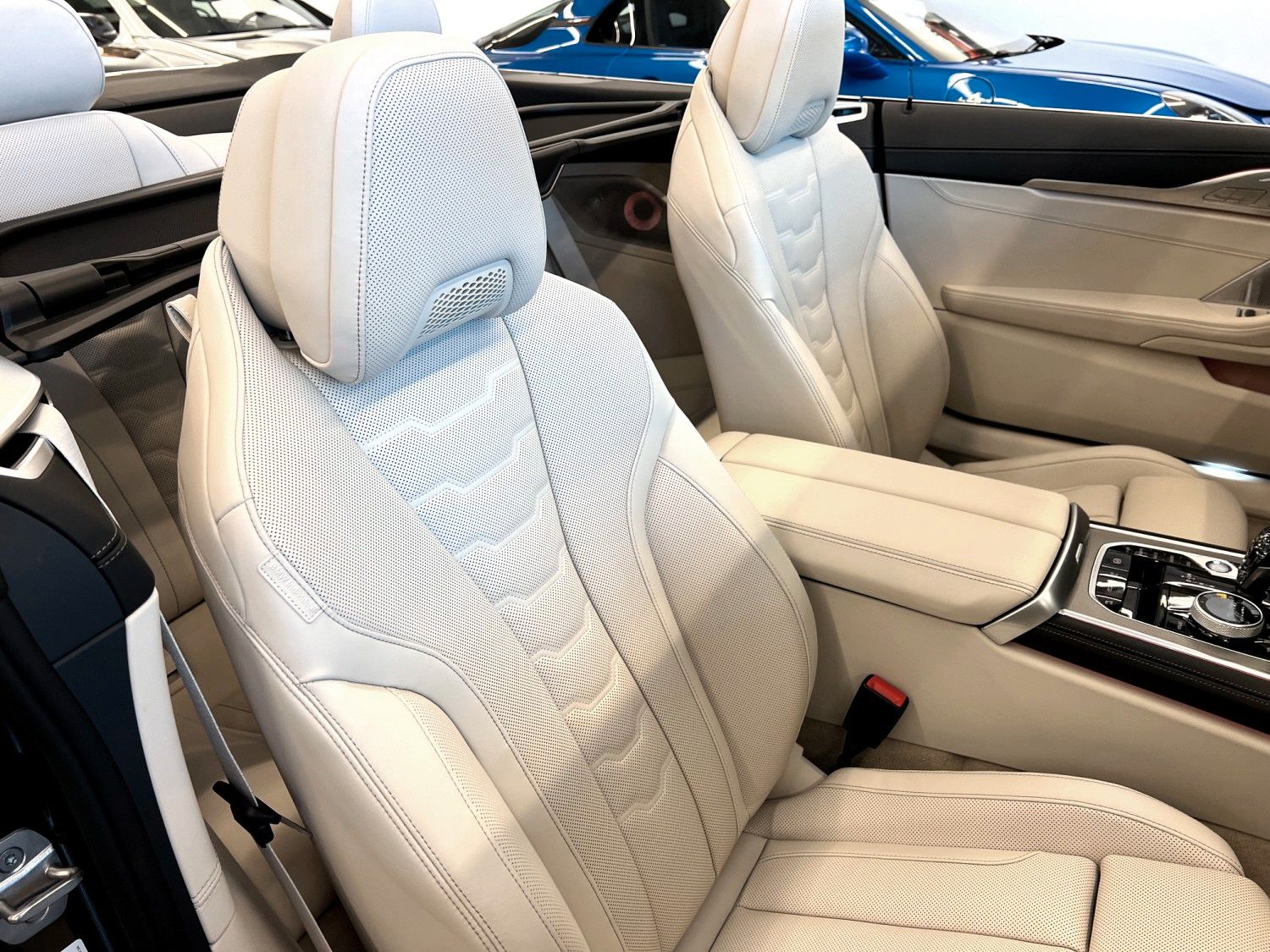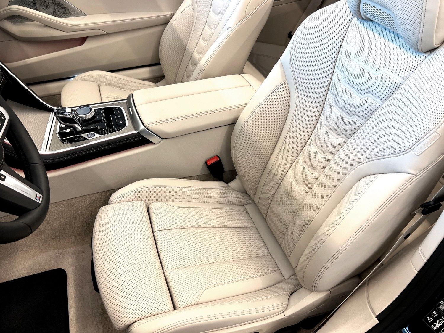 Aktive Sitzbelüftung vorn, Chrome-Line Exterieur, Innenausstattung: Erweiterte Lederausstattung BMW Individual Leder Merino (Elfenbein-Weiß), Innenausstattung: Glas-Applikationen (CraftedClarity) für Bedienelemente, Metallic-Lackierung, Open-Air-Paket, Scheinwerfer Laserlicht