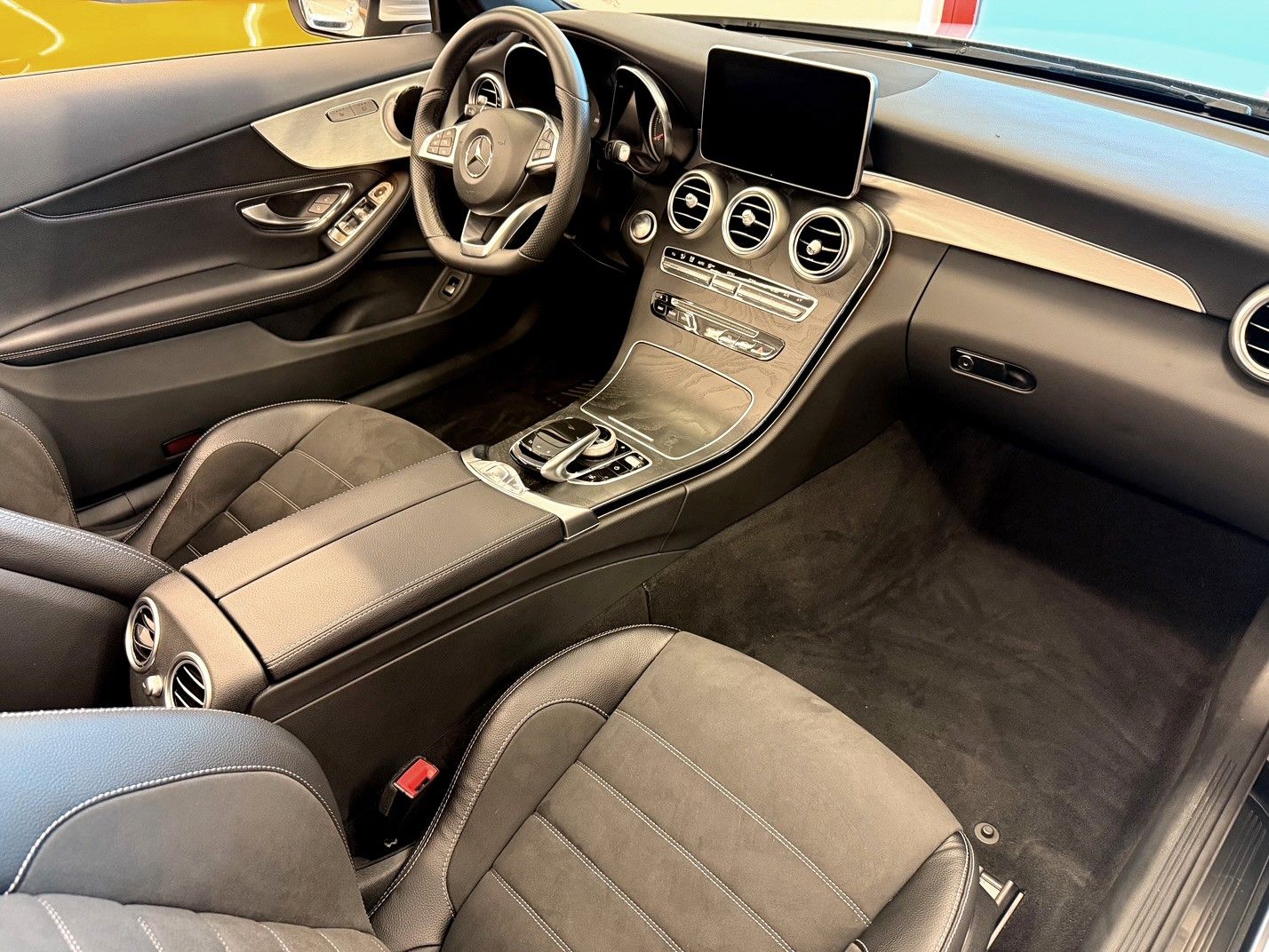 Aircap, Akustik-Verdeck schwarz, Ambiente-Beleuchtung, AMG-Line Interieur, Audio-Navigationssystem: COMAND Online, Bereifung mit Notlaufsystem, Fahrassistenz-Paket Plus, Fahrassistenz-System: aktiver Park-Assistent, Head-up-Display (Frontsichtanzeige), Infotainment-System: Remote Online, Intelligent Light System LED, Keyless Go Startanlage, Kopfraumheizung (Airscarf), Kraftstofftank: vergrößert, LM-Felgen vorn/hinten: 7,5x19 / 8,5x19 (AMG, Vielspeichen schwarz, glanzgedreht), Metallic-Lackierung, Park-Paket, Sitzheizung vorn, Spiegel-Paket, Vorrüstung Mobiltelefon/Handy / Komfort-Telefonie / LTE-fähig