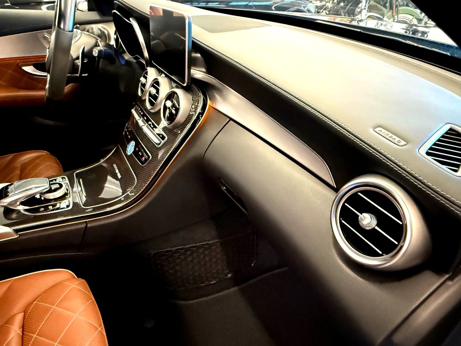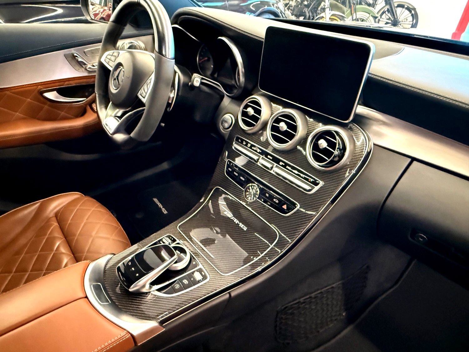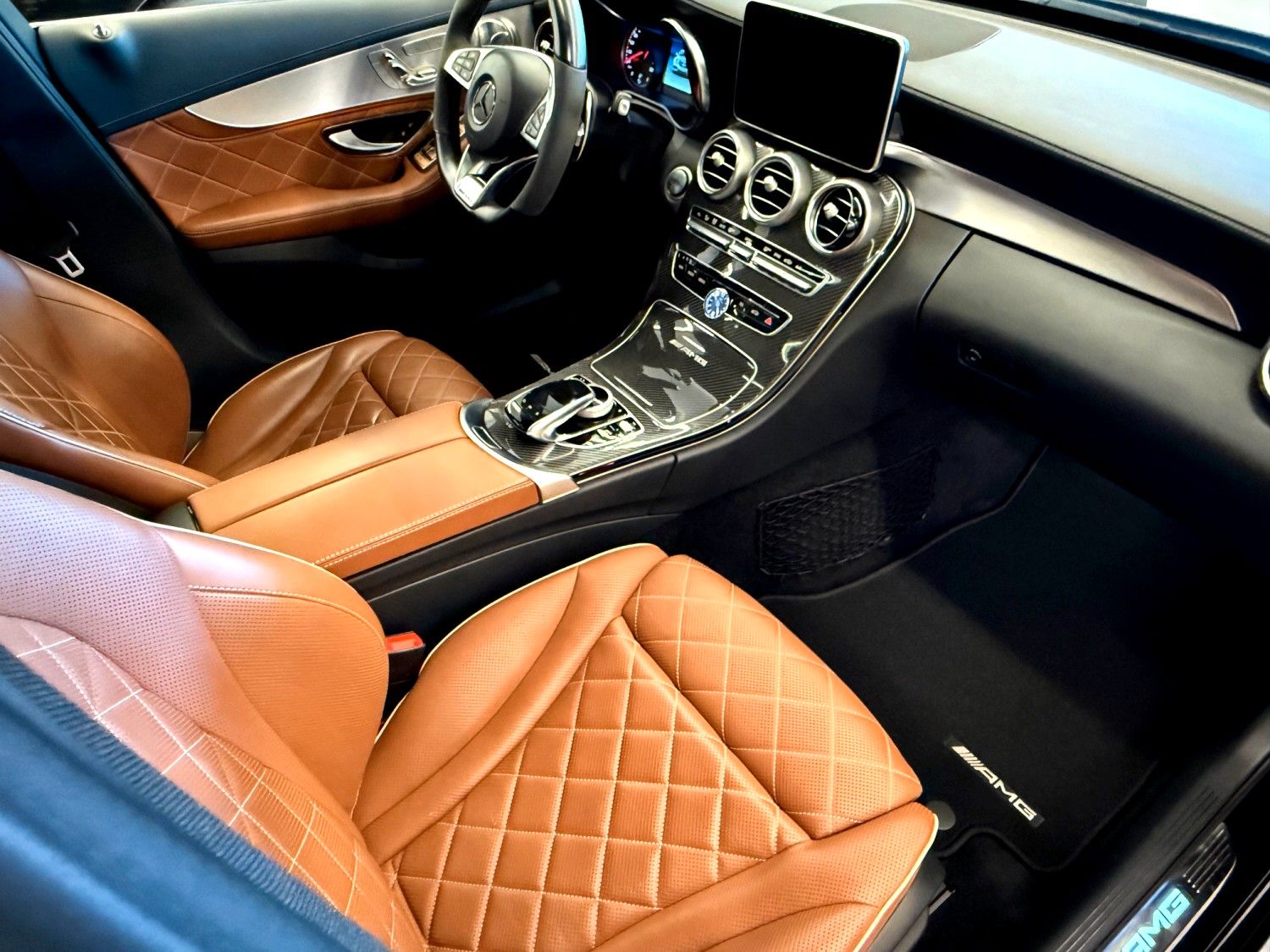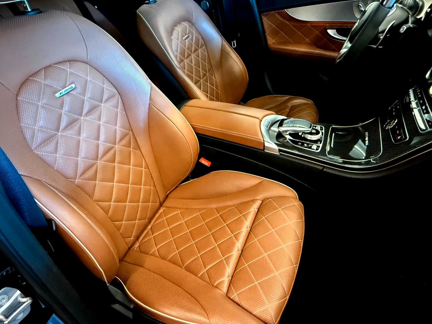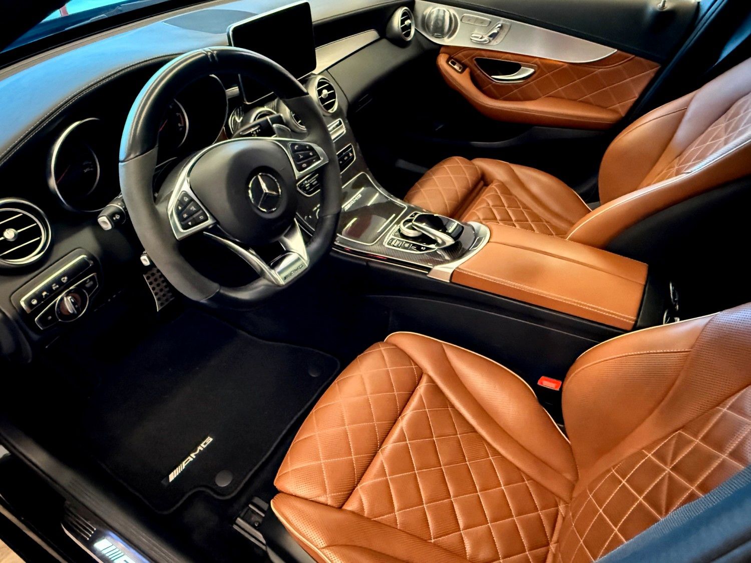 Ablage-Paket, Ambiente-Beleuchtung, AMG Driver's Package, Armaturentafel Oberteil in Nappaoptik, Audio-Navigationssystem: COMAND Online, Ausstattungs-Paket: Business Plus, Ausstattungs-Paket: designo Interieur (Sattel-Braun / schwarz), Fahrassistenz-Paket Plus, Fahrassistenz-System: Fernlichtassistent Adaptive plus, Innenausstattung: Zierteile Carbon (AMG), Intelligent Light System LED, Keramik-Bremsanlage (AMG), LM-Felgen vorn/hinten: 8,5x19 / 9,5x19 (Kreuzspeichen), Metallic-Lackierung, Night-Paket (AMG), Panorama-Schiebedach, Park-Paket, Scheibenwaschanlage beheizt, Sitz vorn links elektr. verstellbar (mit Memory), Sitz vorn rechts elektr. verstellbar (mit Memory), Sitze vorn: Klimatisierung, Sound-Komfort-Paket, Spiegel-Paket, Sport-Auspuffanlage (AMG Performance), Touchpad mit Drehknopf (Mittelkonsole), Vorrüstung Mobiltelefon/Handy / Komfort-Telefonie / LTE-fähig, Zeituhr (Analog)