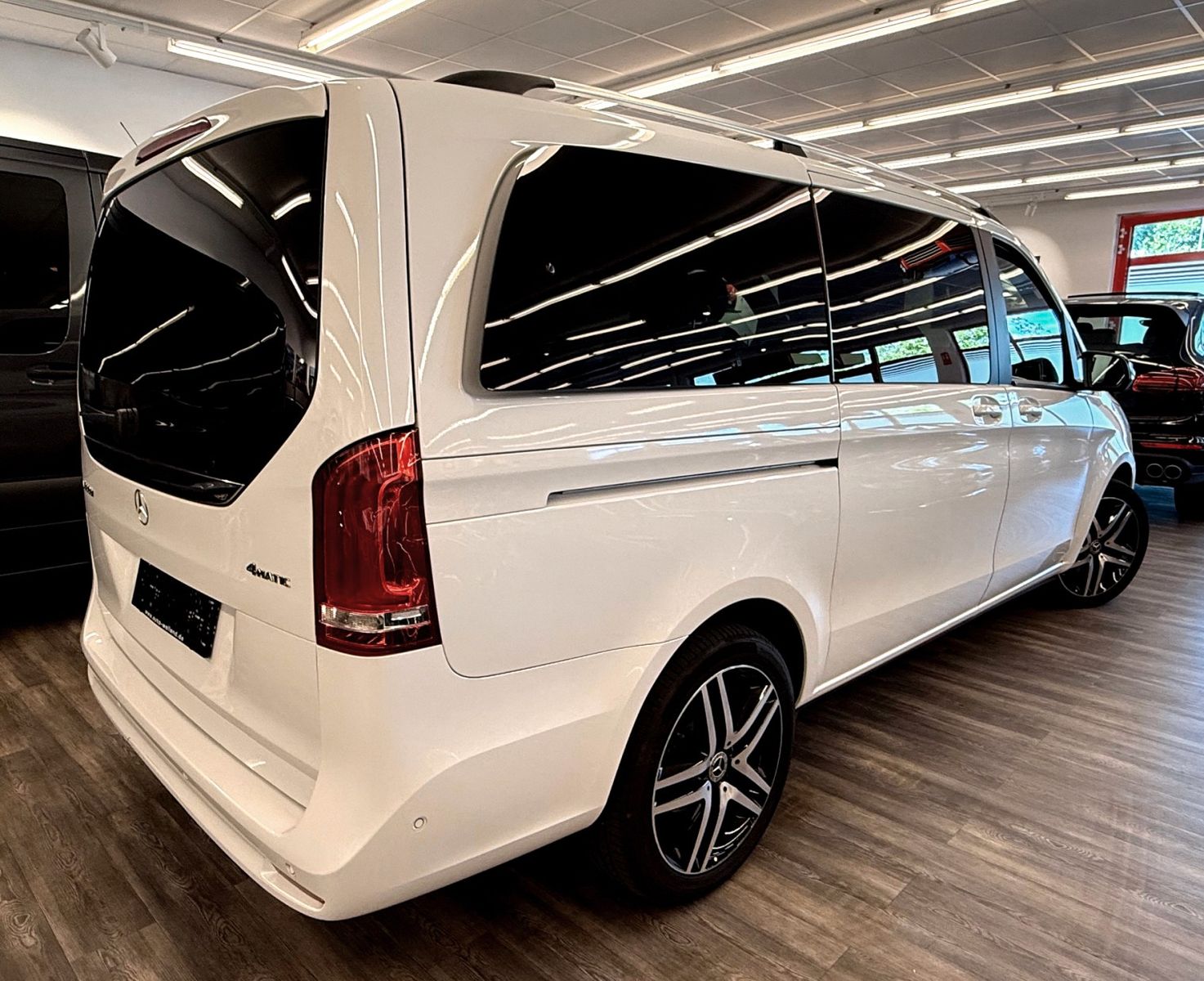 Ablagenetz an Vordersitzlehne links, Adaptives Bremslicht, Airbag Beifahrerseite, Airbag Fahrerseite, Ambiente-Beleuchtung, Anfahrhilfe (Berganfahr-Assistent), Anhängerkupplung: Elektrik für Anhängersteckdose, Antriebsart: Allradantrieb, Anzeige für Waschwasserstand, Armlehnen Fahrgastraum, Auflastung auf 3,1 t, Außenspiegel asphärisch, beide, Außenspiegel elektr. verstell- und heizbar, beide, Außenspiegel mit integrierter Blinkleuchte, Außentemperaturanzeige, Avantgarde Edition, Beleuchtung im Haltegriff Fond mit Lesespot, BlueEfficiency-Paket, Bodenbelag: Teppich im Fahrerraum, Bodenbelag: Teppich im Lade-/Fahrgastraum, Bremsassistent, Bremssystem mit ABS+ASR, DAB-Tuner (Radioempfang digital), Design- und Ausstattungslinie Avantgarde Edition, Direktlenkung mit variabler Lenkkraft-Unterstützung, Einschaltautomatik für Fahrlicht, Einstiegsgriff hinten, Einstiegsleisten mit Schriftzug Mercedes-Benz (beleuchtet), Einstiegsleuchten, Fahrassistenz-Paket, Fahrassistenz-System: Attention-Assist (Müdigkeitserkennungs-Sensor), Fahrassistenz-System: Pannenmanagement, Fahrassistenz-System: Seitenwind-Assistent, Fahrassistenz-System: Verkehrszeichenerkennung, Fenster für hintere Türen / Heckklappe mit Wisch-/Waschanlage, Fenster im Lade-/FG-Raum: - feststehend, vorn links, Fenster im Lade-/FG-Raum: - feststehend, vorn rechts, Feststellbremse elektrisch, Feststeller Schiebetür (Aktiv), Getriebe Automatik GTronic - (9-Stufen), Gurtstraffer, Haltegriffe im Fond, Handschuhfach abschließbar, Harnstofftank (AdBlue): 24 Ltr., Heckklappe mit automatischem Öffnungs- und Schließsystem, Heckscheibe aufstellbar, Heckscheibe heizbar, Intelligent Light System LED, Karosserie/Aufbau: Bus, Karosserie/Aufbau: lang, Kindersicherung, Klimaautomatik Fond (Tempmatik), Kombiinstrument mit Farbdisplay, Komfort-Klimaautomatik Thermotronik, Komfortbeleuchtung im Fahrgast-/Laderaum, Kommunikationsmodul Mercedes me connect (Internetbasierende Dienste), Kopf-Airbag-System (Windowbag), Kopf-Schulter-Airbag (Thoraxbag) Fahrer-/Beifahrerseite, Lenkrad (Lenksäule mech. verstellbar), Lenkrad mit Multifunktion inkl. Reiserechner, Leuchtweitenregelung, Mercedes-Benz Notrufsystem, Metallic-Lackierung, Modellpflege, Motor 2,0 Ltr. - 174 kW CDI KAT, Multimediasystem MBUX (Touchscreen 10,25"), Navigationssystem für Multimediasystem MBUX, Park-Paket mit 360° Kamera, PKW-Zulassung, PTC Heater, Radstand 3200 mm, Reifendruck-Kontrollsystem, Rückspiegel innen, Schadstoffarm nach Abgasnorm Euro 6d, Scheibenwischer mit Regensensor, Schiebetür Lade-/Fahrgastraum links, Schiebetür links elektrisch, Schiebetür rechts elektrisch, Sicherheitsgurt-System mit Warnanlage (Beifahrerseite), Sitzausstattung: Isofix-Kindersitz-System, Sitzausstattung: Schnellverriegelung für Sitzschienen-System, Sitzbezug / Polsterung: Leder Lugano, Sitze im Fahrerhaus: Beifahrersitz Komfort, Sitze im Fahrerhaus: Fahrersitz heizbar, Sitze im Fahrerhaus: Fahrersitz Komfort, Sitze im Lade-/FG-Raum: 1.Reihe, 1 Einzelsitz links, Sitze im Lade-/FG-Raum: 1.Reihe, 1 Einzelsitz rechts, Sitze im Lade-/FG-Raum: 2.Reihe, 1 Einzelsitz links, Sitze im Lade-/FG-Raum: 2.Reihe, 1 Einzelsitz rechts, Sonnenblenden mit Spiegel (beleuchtet), Spiegel-Paket, Steckdose (12V-Anschluß) im Lade-/Fahrgastraum, Steckdosen (12V-Anschluß) im Lade-/Fahrgastraum, 2-fach, Stoßfänger / Stoßf.-Leiste seitlich + Griff an Heckklappe lackiert, Surround-System Burmester, Verglasung hinten abgedunkelt / Schwarzglas, Vlies-Batterie 92 Ah, Vorbereitung Navigationssystem (für Multimediasystem MBUX), Warmluftkanal zum Lade-/Fahrgastraum, Wartungsintervall-Anzeige Assyst, Wärmeschutzverglasung, Zul. Gesamtgewicht 3,10 t
