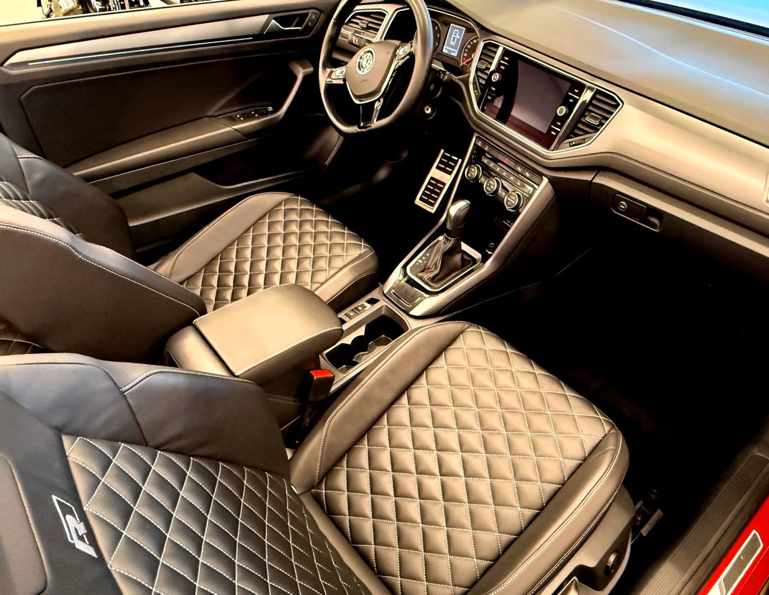 Airbag Fahrer-/Beifahrerseite, Beifahrerairbag abschaltbar, Ambiente-Beleuchtung weiß, Automatische Fahrlichtschaltung (ALS) mit Leaving Home / Coming-Home-Lichtfunktion, Außenspiegel asphärisch, links, Außenspiegel lackiert, Bluetooth-Schnittstelle für Mobiltelefon, Bremsbelagverschleissanzeige, Chrom-Paket (1), Chromleisten an Seitenfenstern, Einparkhilfe vorn und hinten, Einstiegshilfe Easy-Entry, Einstiegsleisten vorn R-Line, Elektron. Stabilitäts-Programm (ESP) Bremsassistent, ASR/ABS, EDS, Anhängerstabilisierung, MSR, Fahrassistenz-System: Fahrprofilauswahl, Fahrassistenz-System: Müdigkeitserkennung, Fahrassistenz-System: Spurhalteassistent (Lane Assist), Fahrassistenz-System: Umfeldbeobachtungssystem (Front assist) mit City-Notbremsfunktion, Fensterheber elektrisch vorn und hinten, Frontscheibe Verbundglas getönt, Funkschlüssel (2) klappbar, Fußmatten Textil, Heckleuchten LED, dunkelrot, Innenausstattung: Dekoreinlagen Shadow Steel, Innenspiegel abblendbar, Isofix-Aufnahmen für Kindersitz an Rücksitz, Karosserie: 2-türig, Kopfstützen hinten (2-fach), Lendenwirbelstützen vorn, elektr. verstellbar, Mobile Online Dienste Vorbereitung We Connect und We Connect Plus, Motor 1,5 Ltr. - 110 kW 16V TSI ACT, Multifunktionsanzeige Plus, Multimedia-Schnittstelle 2 x USB (Typ C) vorn, Nebelschlussleuchte, Nichtraucher-Paket, Notrufsystem, Otto-Partikelfilter (OPF), Parkbremse elektrisch mit Auto-Hold-Funktion, Pedale Edelstahl, Progressivlenkung, Radioempfang digital (DAB+), Radstand 2630 mm, Reifen-Reparaturkit (Tire Mobility Set), Reifenkontroll-Anzeige, Rücksitzlehne geteilt (ohne Armlehne), Schadstoffarm nach Abgasnorm Euro 6d, Seitenairbag vorn mit Kopf-Airbag-Einheit, Sicherheitsgurte hinten außen mit Gurtstraffer, Sitze vorn höhenverstellbar, Sitze: Sport-Komfortsitze vorn, Sonnenblenden mit Spiegel (beleuchtet), Sport-Fahrwerk, Start/Stop-Anlage, Stoßfänger R-Line, Türabdeckung unten in Wagenfarbe, Türgriffe außen Wagenfarbe, Verbandkasten und Warndreieck, Verdeckbetätigung elektro-hydraulisch, Warnanlage für Sicherheitsgurte vorn und hinten